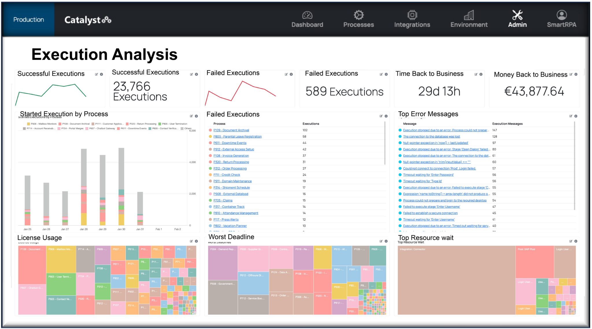 With Catalyst Pulse, you will get insights into ROI, executions, errors and license