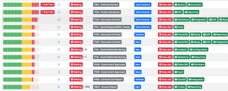 The execution engine tells you the priority of all running and waiting/blocked executions, showing you if your setup is missing capacity to handle critical tasks before a deadline. View in real time how Catalyst prioritizes tasks based on their urgency.