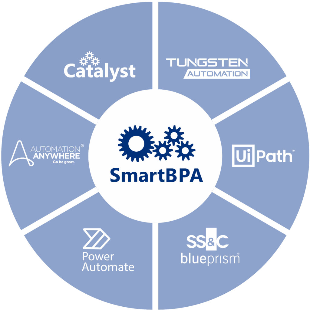 SmartBPA offers professional services within SS&C Blue Prism, Tungsten Automation Total Agility and RPA, Microsoft Power Automate, UiPath, Automation Anywhere and SmartBPA Catalyst.